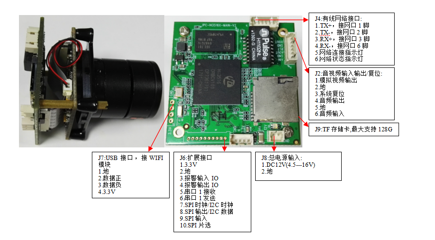 预留接口 | SPI、I2C3、报警输入、报警输出 | |